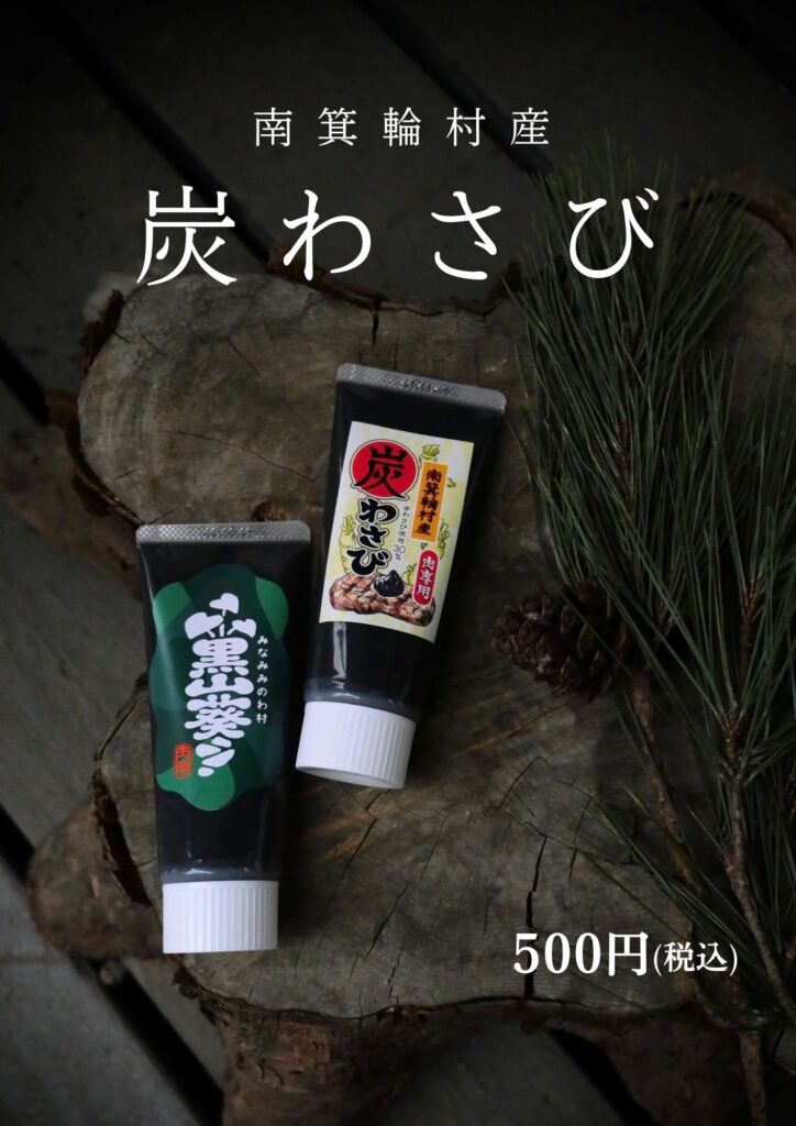 南箕輪村に、これまでにない全く新しい特産品が誕生しました。 村の木「赤松」から生まれた伊那赤松妙炭と、澄みわたる湧水で育ったわさび。 村の歴史と自然が交差し、南箕輪小学校6年4組の児童たちがわさび田を復活させたことで結実した、奇跡の「黒いわさび」です。